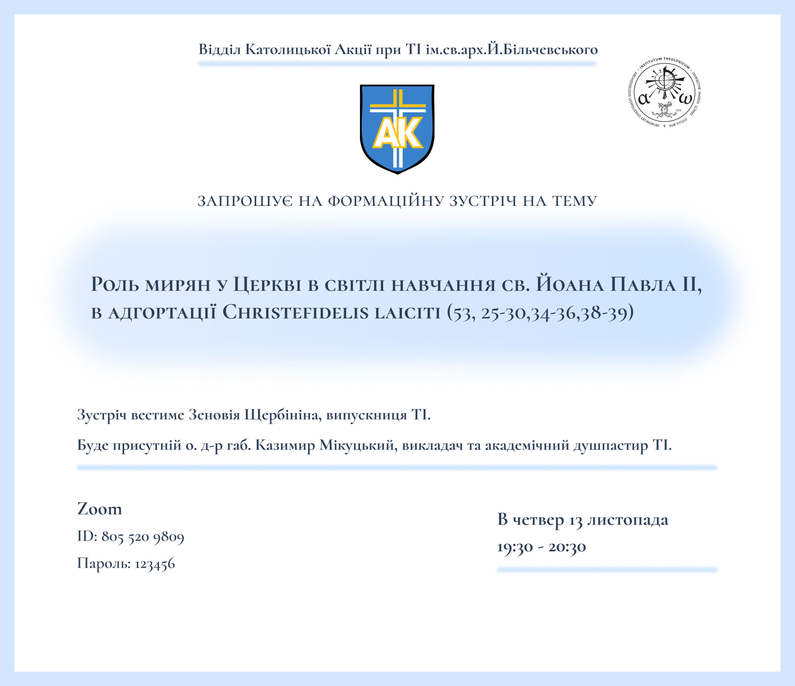 Пізніше розповіли більше про діяльність Католицької Акції та запросили всіх охочих доєднатись до організації. Опісля переживали Адорацію Пресвятих Дарів, супроводжуючи співом та спільною молитвою. Щиро дякуємо настоятелю парафії, отцю Петру Ворві за можливість та організацію цієї зустрічі!