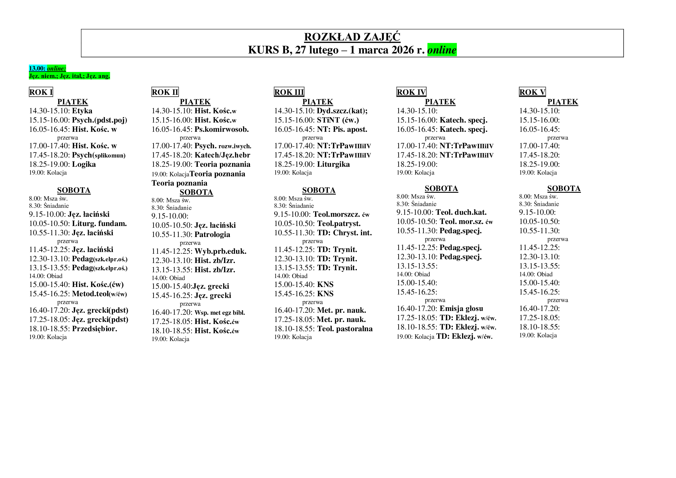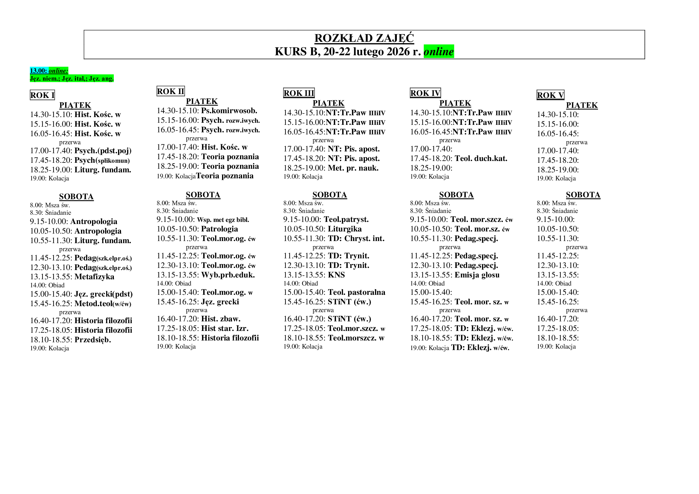 Розклад занять 13-15.02.2026 (na żywo)