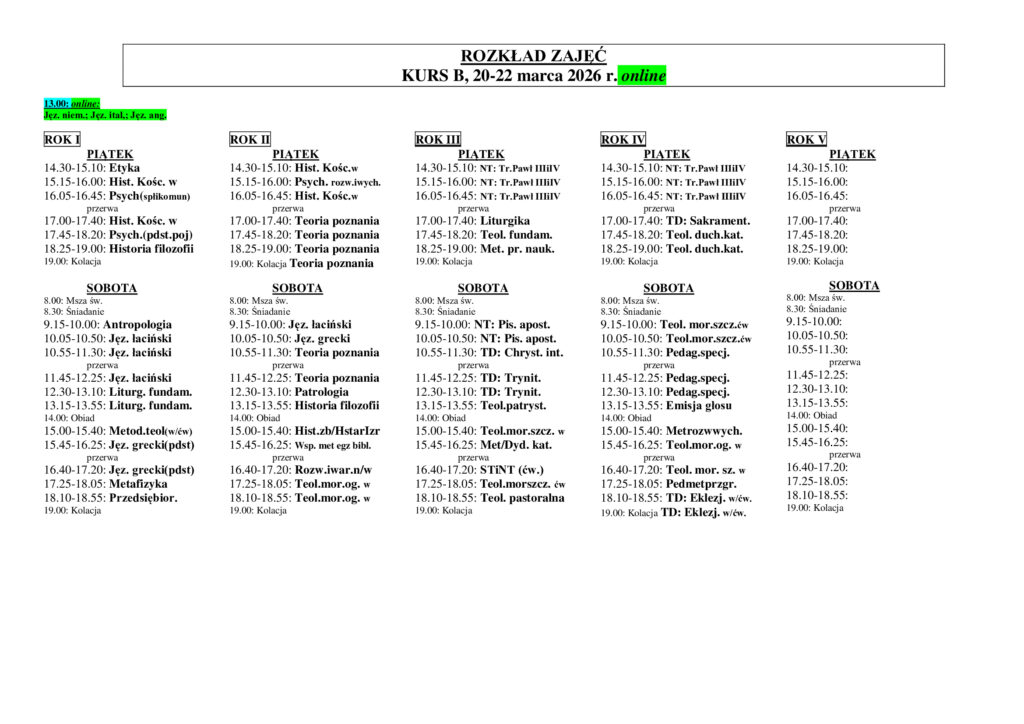 Розклад занять 13-15.03.2026 (na żywo)