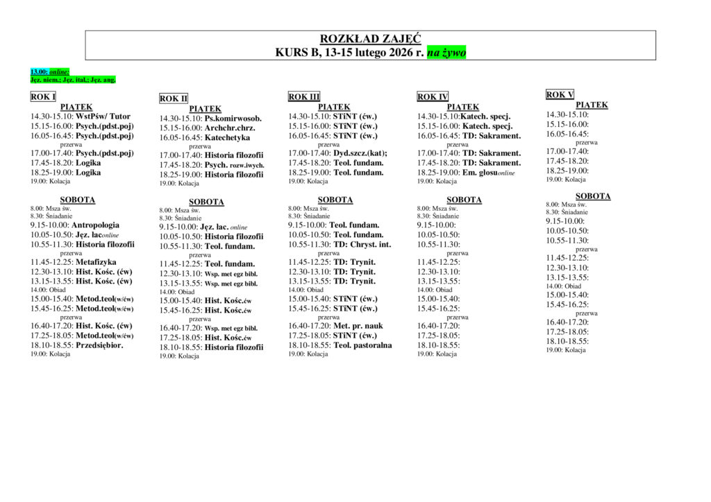 Розклад занять 13-15.02.2026 (na żywo)